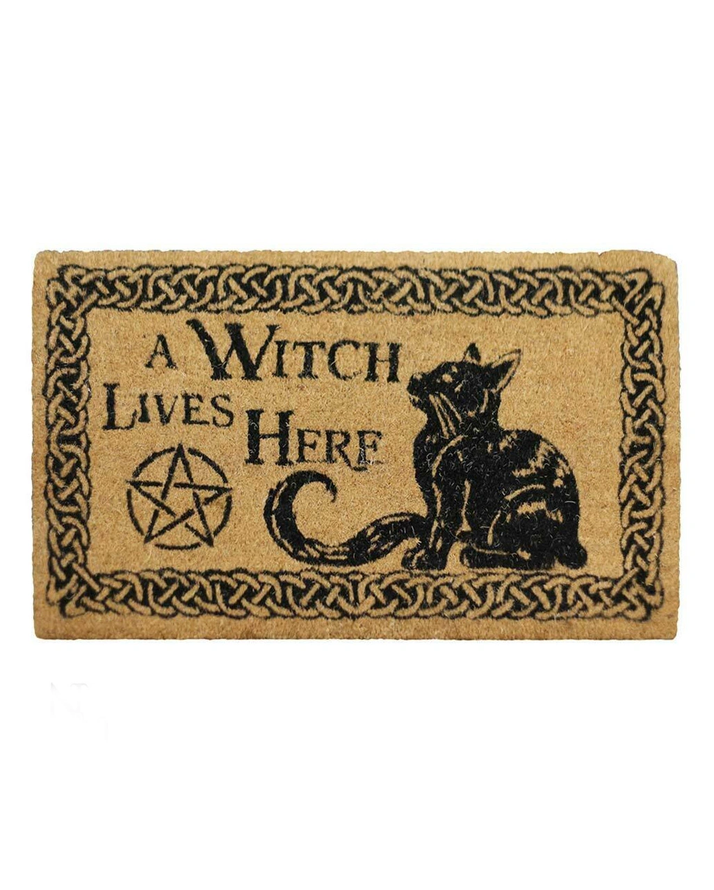 Du hast keine Lust auf nervigen besuch, der dich bei deinen Zauberkünsten stört? Dann mach gleich an deiner Pforte deutlich, dass du Magie und Hexenwerk beherrschst. Umrandet von einem sich wiederholenden keltischen Muster, trägt die Hexen Fußmatte den Text „A Witch Lives Here“, mit einem Pentagramm und einer schwarzen Katze – Ein Hexen Wohnaccessoire, das dich noch geheimnisvoller macht!