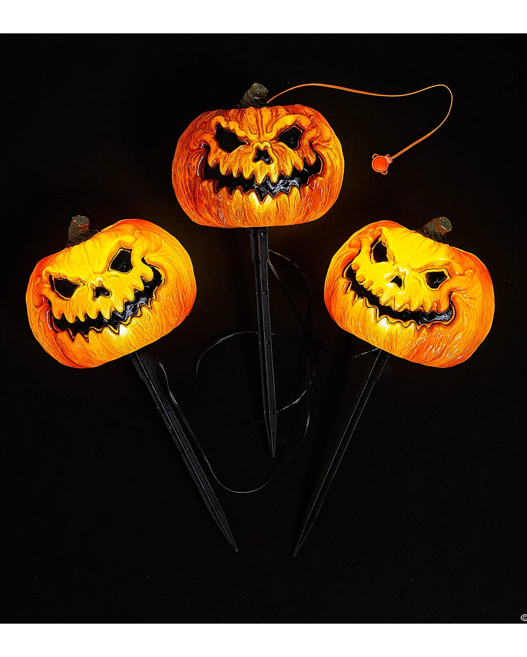Jede wahre Halloween Party lebt von atmosphärischen Animatronics wie unseren bösen Kürbis Gehweg Lichtern mit Licht und Sound! Die unheimliche Außen-Deko für den Bürgersteig eignet sich wunderbar für Halloween & Grusel Partys!