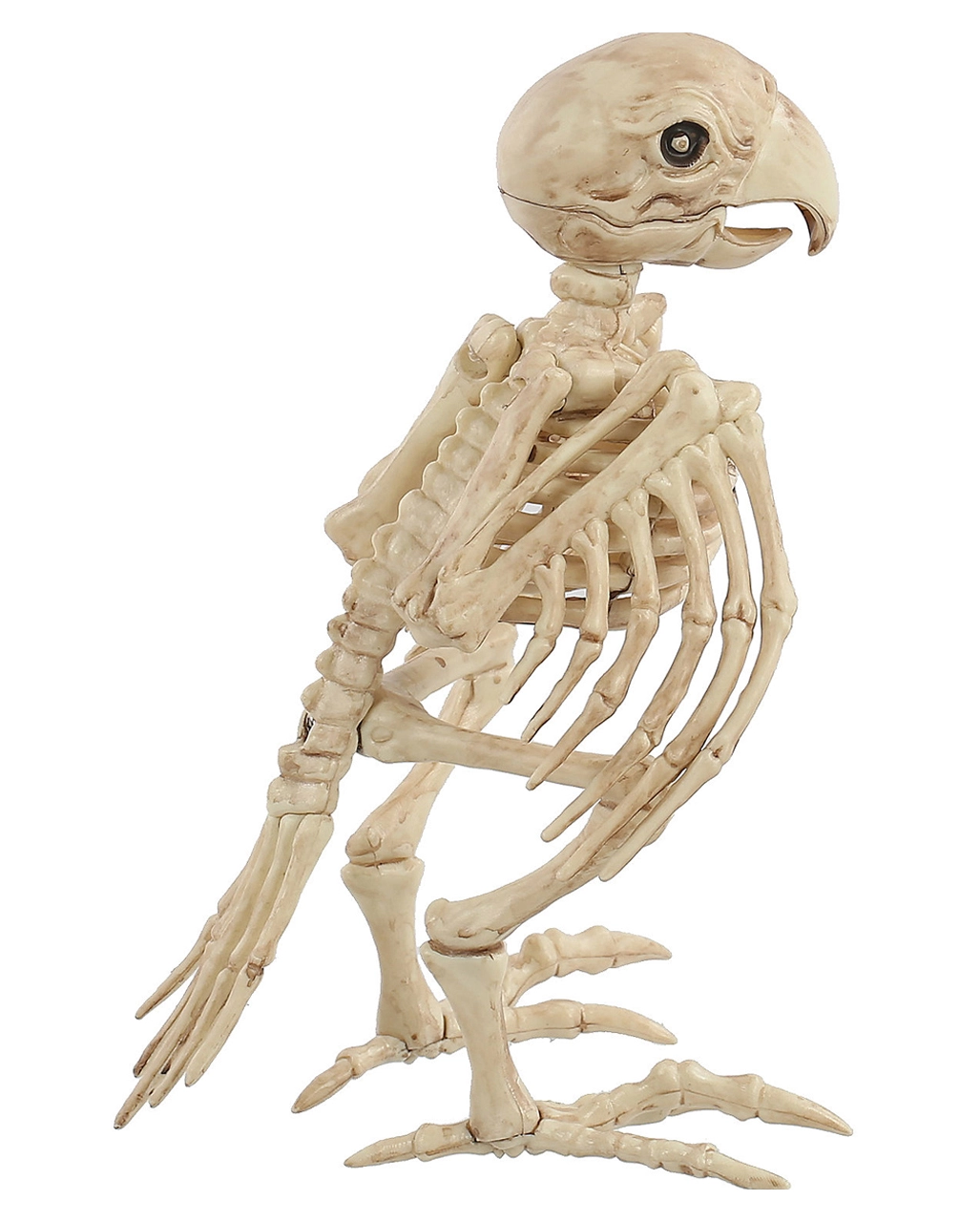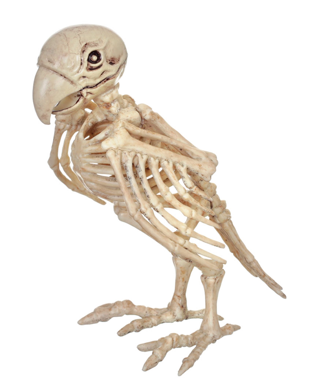 Unser Papagei Skelett ist aus solidem Kunststoff gefertigt und ca. 19 x 11 cm groß. Diese Skelett Deko für Halloween ist sehr preisgünstig und erzielt mit geringem Aufwand eine große Wirkung. Bestelle auch die Hängefigur Skelett Torso 90cm dazu!